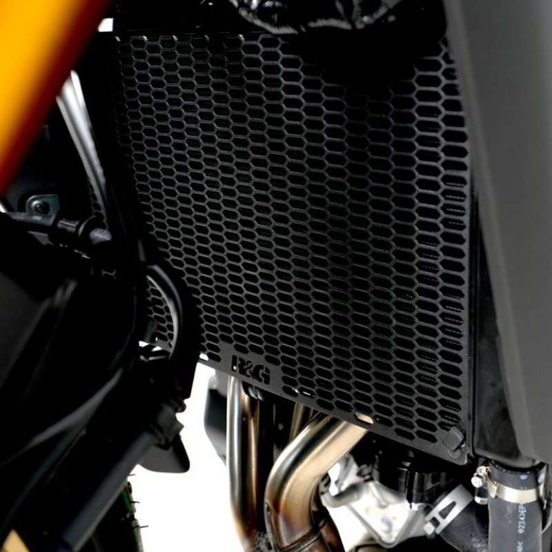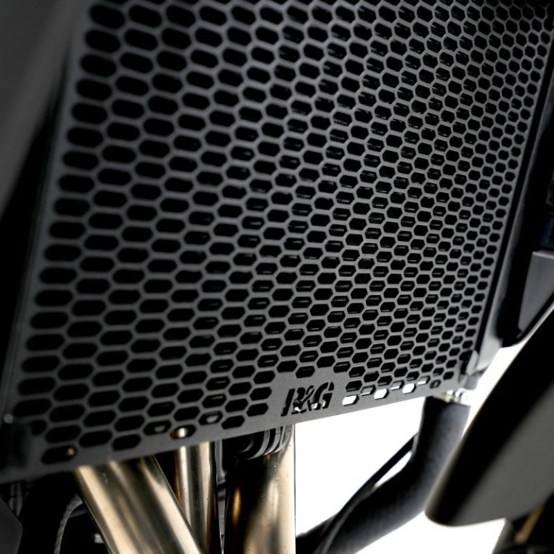 Das lasergeschnittene Design ist modern und ergänzt den Look jedes Motorrads. Dank der markanten, strukturierten, matten Pulverbeschichtung sind die R&G Pro Kühlerschutzgitter außerdem Korrosionsbeständig.