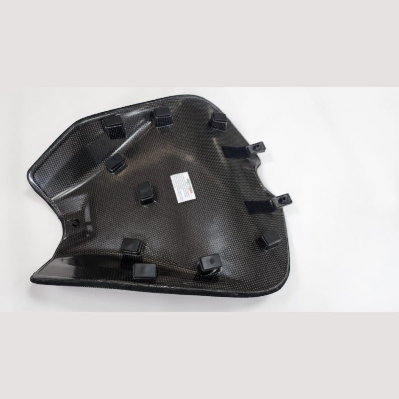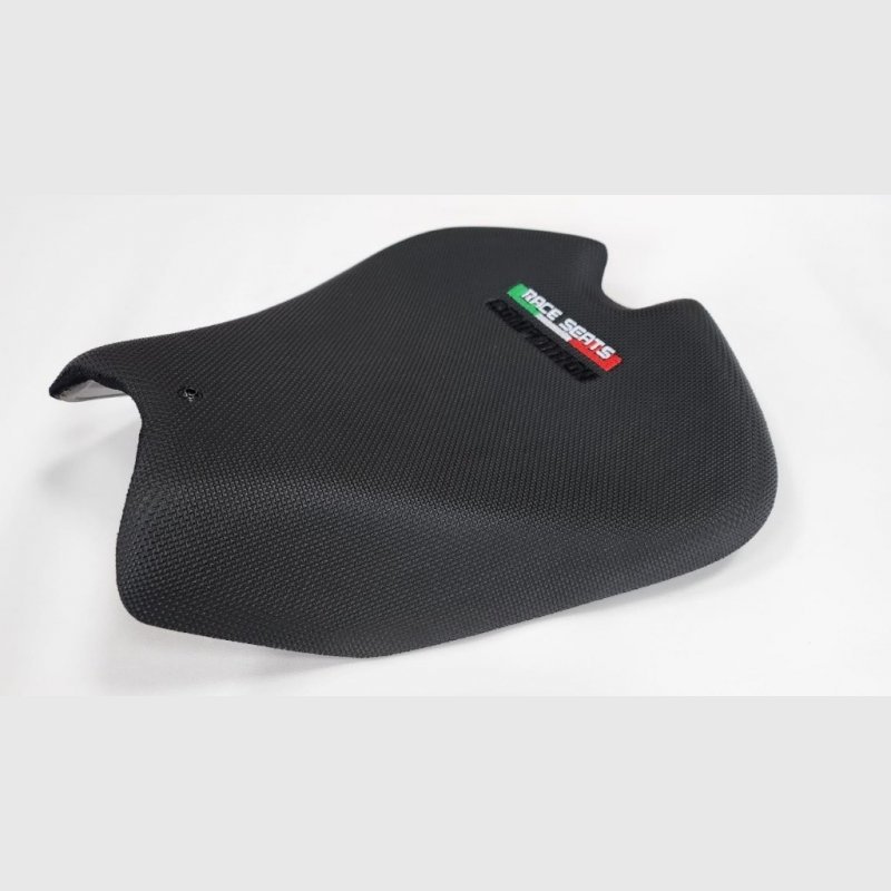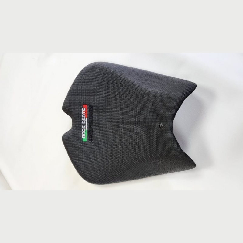 - Verwendet wird beim Sitz eine Mousse mit sehr hoher Dichte (das gleiche wie bei den Fahrern in der SBK, Moto 2 und Moto GP). Dies bringt einen sehr hohen Grip und ein perfektes Fahrgefühl sowohl im Trockenen wie auch bei Nässe. Der Sitz wird an den gleichen Aufnahmen befestigt wie der Seriensitz. Eine leichte Rissbildung im Material ist normal und stellt keinen Mangel dar. Diese Rissbildung ist unumgänglich bei dem Competition Material und dem Grip.