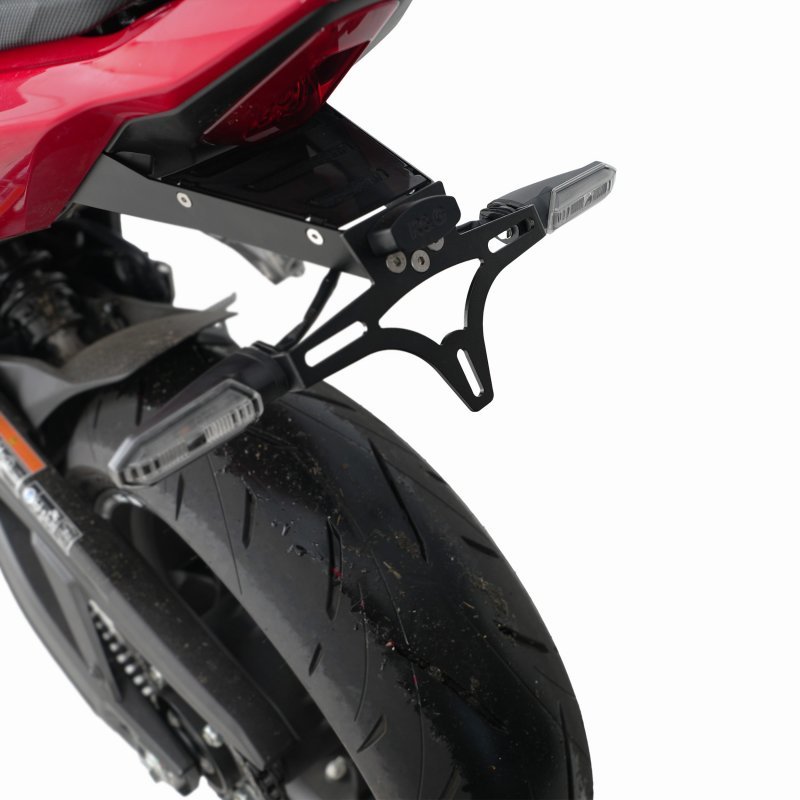 Der R&G Premium Kennzeichenhalter bietet eine erstklassige Kombination aus sportlichem Design, robuster Konstruktion und passgenauer Fertigung. Entwickelt, um die Optik des Motorrads zu optimieren, überzeugt er durch hochwertige Materialien und eine perfekte Integration ins Fahrzeugheck. Der Kennzeichenhalter ist leicht, stabil und wird mit einer LED-Kennzeichenleuchte mit E-Zeichen geliefert. Dank der durchdachten R&G Bauweise ist keine Anpassung der Verkleidung notwendig – die Montage erfolgt im Plug-and-Play-Verfahren. Der Halter ermöglicht die Verwendung sowohl von Originalblinkern als auch von Microblinkern. Somit ist er ideal für Fahrer, die Wert auf Qualität, Sicherheit und Ästhetik legen.