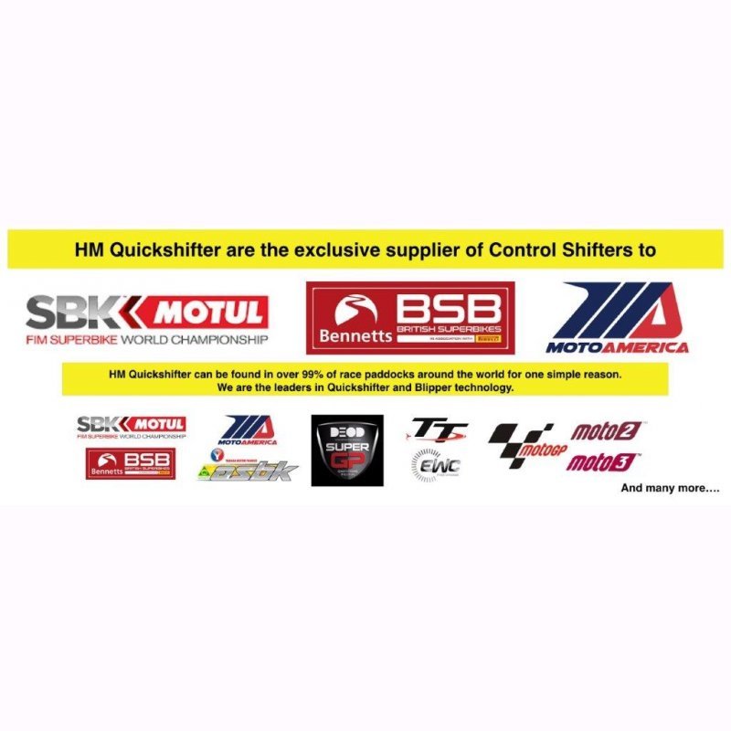 Nicht ohne Grund, ist HM Quickshifter Marktführer und exklusiver Lieferant in diesen Rennklassen und hat eine Zulassung von der DORNA. Weiterhin ist HM Quickshifter der einzigste Zubehörlieferant im Aftermarketbereich, der neben Renthal Griffen auch eine Zulassung von HRC hat. Diese Zulassung wird von HRC nur vergeben, wenn man die sehr hohen Standards und mindestens 6 Jahre ausgiebiger Tests dauerhaft besteht.