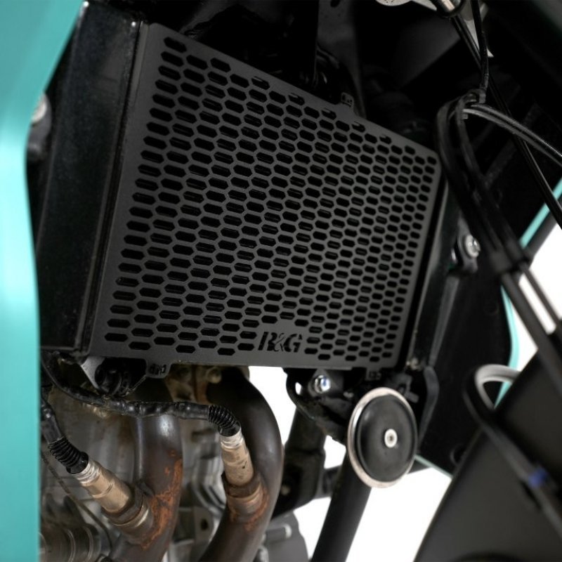 Das lasergeschnittene Design ist modern und ergänzt den Look jedes Motorrads. Dank der markanten, strukturierten, matten Pulverbeschichtung sind die R&G Pro Kühlerschutzgitter außerdem Korrosionsbeständig.