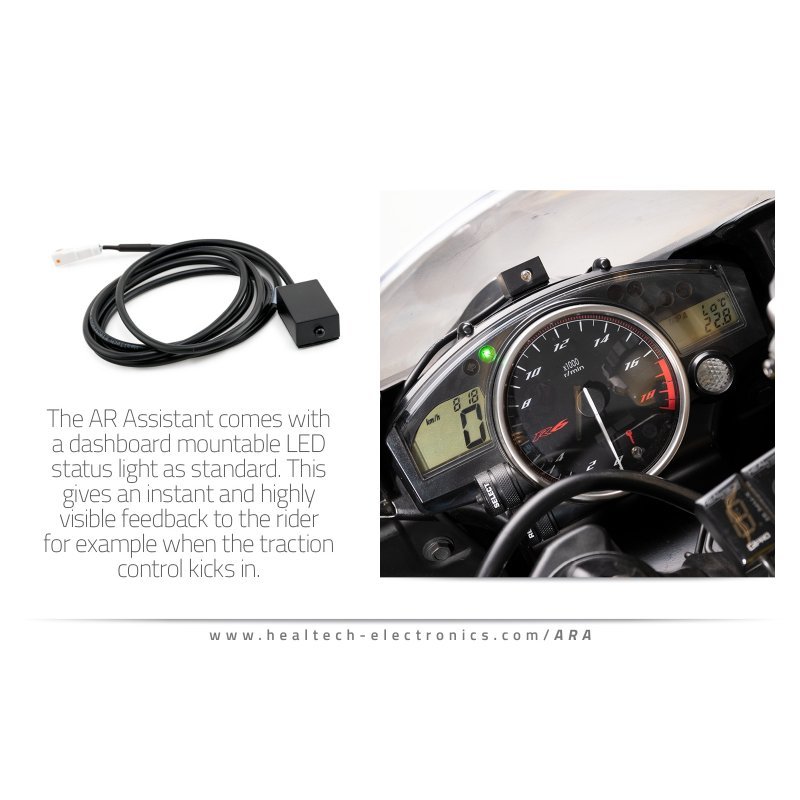Das Healtech Advanced Rider Assistant System ARA-1 + ARA-K2F + ARA-DD11 ist ein modernes Fahrerassistenzsystem, das die volle Kontrolle über Traktion, Wheelie und Beschleunigung ermöglicht. Es wurde sowohl für den Straßen- als auch den Rennstreckeneinsatz entwickelt und sorgt für ein präzises, sicheres und leistungsstarkes Fahrverhalten. Dank der fahrzeugspezifischen Kabelsätze ist die Installation schnell und unkompliziert. Der AR Assistant vereint Traktions- und Wheelie-Kontrolle (AW-TC), Launch Control (LC) sowie Boxengassen- und Höchstgeschwindigkeitsbegrenzer (PIT) in einem kompakten System.