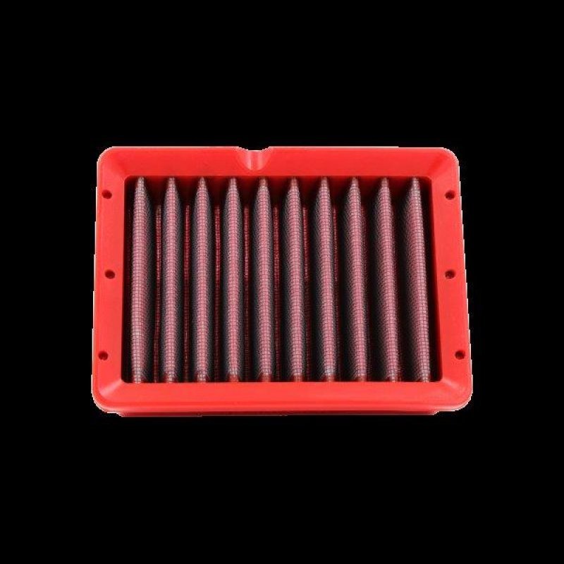Der BMC Performance Luftfilter bietet Ihnen modernste Filtertechnologie für maximale Leistung und Langlebigkeit Ihres Motorrads. Das Know-how aus dem professionellen Rennsport – etwa der Langstrecken-WM oder Superbike-WM – fließt direkt in die Serienfertigung ein. Der Filter überzeugt durch ein spezielles Baumwollgewebe, getränkt in Öl mit geringer Klebrigkeit und umgeben von einem epoxidbeschichteten Aluminiumnetz, das optimal gegen Benzindämpfe und Oxidation schützt. Durch die Verwendung eines einteiligen Gummirahmens wird das Risiko von Brüchen minimiert. Im Vergleich zu herkömmlichen Papierfiltern ermöglicht der BMC Luftfilter einen höheren Luftdurchsatz bei minimalem Druckverlust und trägt somit spürbar zu einer gesteigerten Motorleistung bei. Zudem ist der Filter auswaschbar und mehrfach wiederverwendbar – ein klarer Pluspunkt in Sachen Wirtschaftlichkeit und Nachhaltigkeit.
