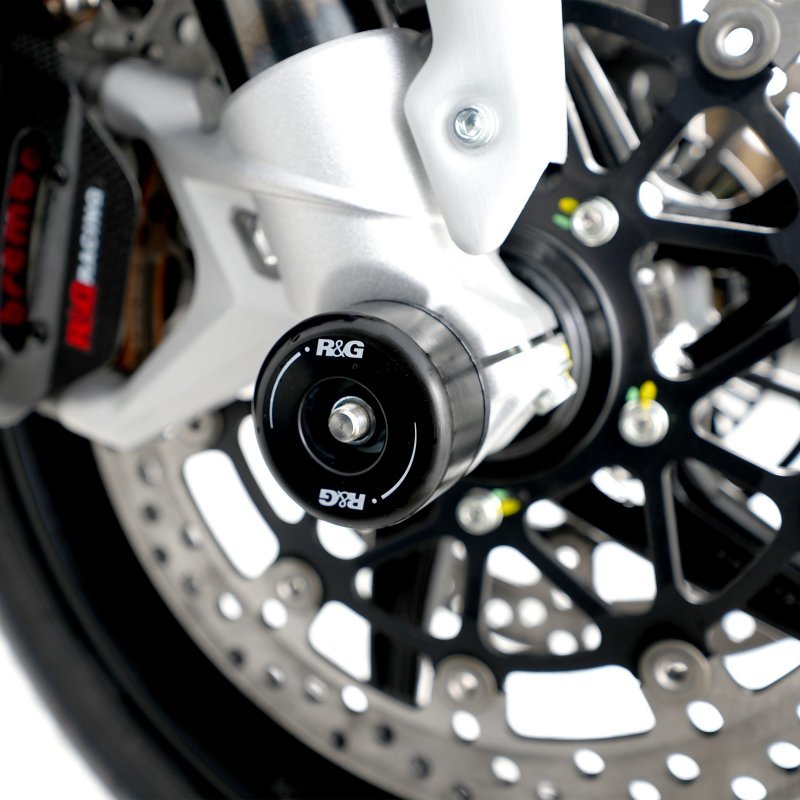 Die R&G Gabel Protektoren bieten einen ausgezeichneten Schutz im Falle eines Sturzes und helfen, kostspielige Beschädigungen an der Gabel Ihres Motorrads zu vermeiden. Das durchdachte Design mit versenkten Befestigungsschrauben sorgt dafür, dass diese weder an- noch abgeschliffen werden können. Die Protektoren bestehen aus robustem, stoßdämpfendem Material und sind präzise auf die Achse abgestimmt, um eine perfekte Passform und hohe Stabilität zu gewährleisten.
