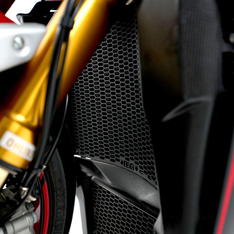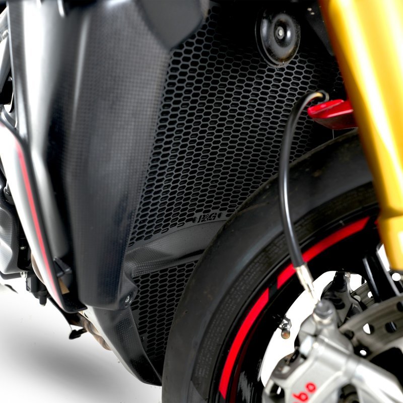 Der R&G PRO BLACK Kühlergitter Schutz bietet einen erstklassigen Schutz für den empfindlichen Wasserkühler Ihres Motorrads. Mit seinem modernen „Hexa“-Design schützt er zuverlässig vor Steinschlägen und Schmutz, ohne die Kühlleistung oder den Luftstrom zu beeinträchtigen. Gefertigt aus leichtem, hochwertigem Aluminium, überzeugt der Pro-Kühlerschutz durch ein optimales Verhältnis von Stabilität zu Gewicht.