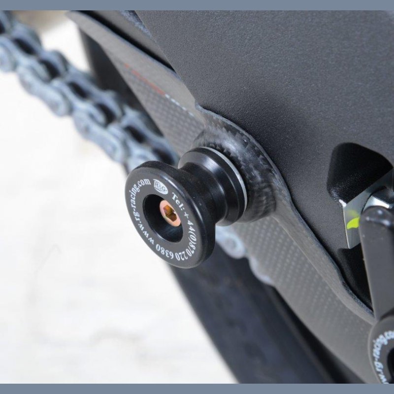 Dank der versenkten Befestigungsschrauben wird ein An- oder Abschleifen bei Bodenkontakt verhindert. Die Montage gestaltet sich besonders einfach – die Protektoren werden direkt in die Hinterradschwinge eingeschraubt. Die Kettenfinne, die auf manchen Produktbildern zu sehen ist, gehört nicht zum Lieferumfang.